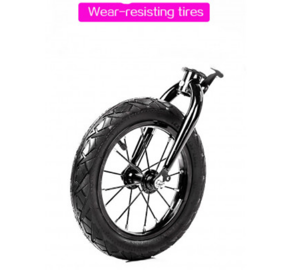 12-inch spoked wheels with rubber tyres with inner tube and wheel nuts protectors.