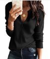 This women's shirt has a long sleeve, v-neckline, lightweight, high-quality waffle knitted material with loose fitting for a trendy look.
