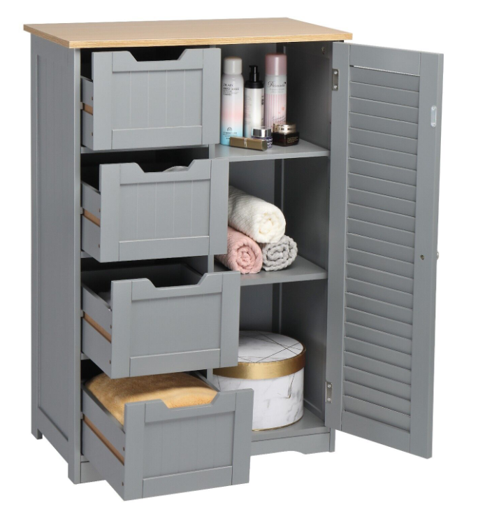 Bathroom Free Standing Floor Cabinet Single Door 4 Drawer Cupboard Storage Unit