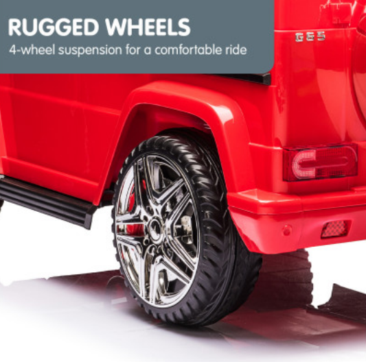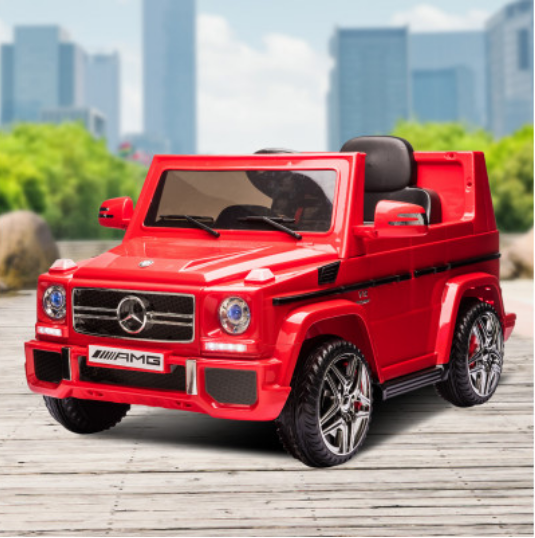 Introducing the Mercedes Benz AMG G65 Ride-On Car - the most awesome gift for little drivers! This sporty replica is licensed by Mercedes and boasts the same silhouette and cool detailing as its full-size counterpart.