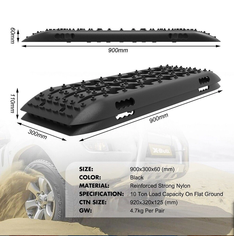 Recovery tracks are essential tools for off-road enthusiasts, designed to aid vehicles stuck in challenging terrains like mud, sand, or snow. Constructed from durable materials, these tracks provide traction and stability, allowing vehicles to regain traction and move forward. The X-BULL Recovery Tracks, with a 10-ton capacity, are versatile 4WD accessories suitable for a range of vehicles. The Gen2.0 version, in sleek black, represents an updated design, and it includes a portable bag for easy storage and transport. Whether used in emergency situations or as preventive measures during off-road excursions, recovery tracks are indispensable for enhancing a vehicle's capability and ensuring a safe and successful journey through diverse and unpredictable landscapes. The portable bag adds convenience, making these tracks a practical and reliable solution for off-road adventurers and 4WD enthusiasts.
